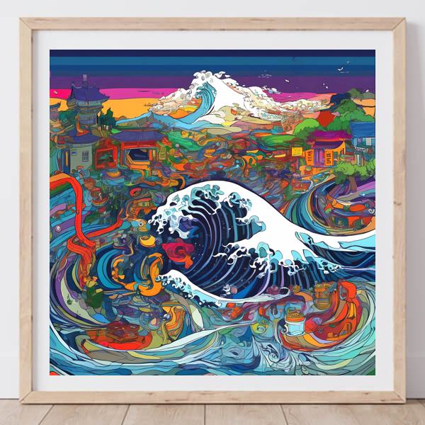 In AI art, the images generated are usually quite rough—about the size of an A6 print (roughly 500–1000 pixels on each side). To make them suitable for presentation, I use a technique called super-resolution, which increases the resolution 4–8 times higher than the original, adding finer detail. However, please note that the resolution of the product image shown above is about the same as the original and has not been upscaled.