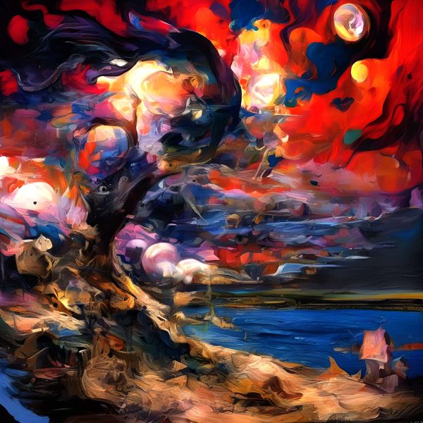 制作者と AI (AI アート作成用のプログラム Stable Diffusion XL 1.0 (1024)) とからなるアートユニット カナブストラクド によるアート画像です.そのプログラムに「Kanabstracd surrealism thunder」ということば (prompt) をあたえて創造させました. 負のプロンプトとして「thunder」を指定しています.