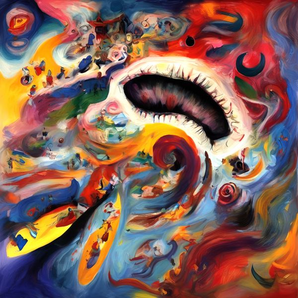 これらの画像は通常の AI アートとはちがう独自の方法を使って作っています. AI アートは AI にプロンプト (または呪文) とよばれる英語の記述をあたえて作画した画像ですが, Stable Diffusion,DALL・E 2,Midjourney などの AI プログラムによって 2022 年に爆発的に普及しました. AI アートで望む画像を作るために通常は比較的細かい指示を与えます. しかしデイシンではおもに 1〜4 語程度の短いことばや造語を Stable Diffusion XL 1.0 (1024) を使用している OpenArt,NightCafe などのウェブサイトで使用して,そのプログラムがもつ知識をいかして自由に (ジェネラティブに,創発的に) 画像をつくらせています. コントラストの調整等はしていますが,描きなおさせたり加筆したりするようなことはしていません.