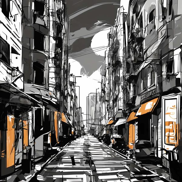 制作者と AI (AI アート作成用のプログラム Stable Diffusion XL 1.0 (1024)) とからなるアートユニット カナブストラクド によるアート画像です.そのプログラムに「Kanabstracd urban Hiroshige」ということば (prompt) をあたえて創造させました. 負のプロンプトとして「Hiroshige」を指定しています.