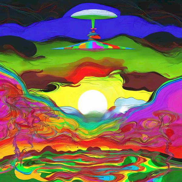 これらの画像は通常の AI アートとはちがう独自の方法を使って作っています. AI アートは AI にプロンプト (または呪文) とよばれる英語の記述をあたえて作画した画像ですが, Stable Diffusion,DALL・E 2,Midjourney などの AI プログラムによって 2022 年に爆発的に普及しました. AI アートで望む画像を作るために通常は比較的細かい指示を与えます. しかしデイシンではおもに 1〜4 語程度の短いことばや造語を Stable Diffusion XL 1.0 (1024) を使用している OpenArt,NightCafe などのウェブサイトで使用して,そのプログラムがもつ知識をいかして自由に (ジェネラティブに,創発的に) 画像をつくらせています. コントラストの調整等はしていますが,描きなおさせたり加筆したりするようなことはしていません.