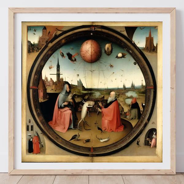 This image was created by ‘Kanabstracd,’ an art unit formed by the creator and the AI (Stable Diffusion XL 1.0 (1024), a program for creating AI artworks). I gave the program the word ‘Kanabstracd Hieronymus_Bosch’ as a prompt and let it create. Also “Garden ” was used as the negative prompt.