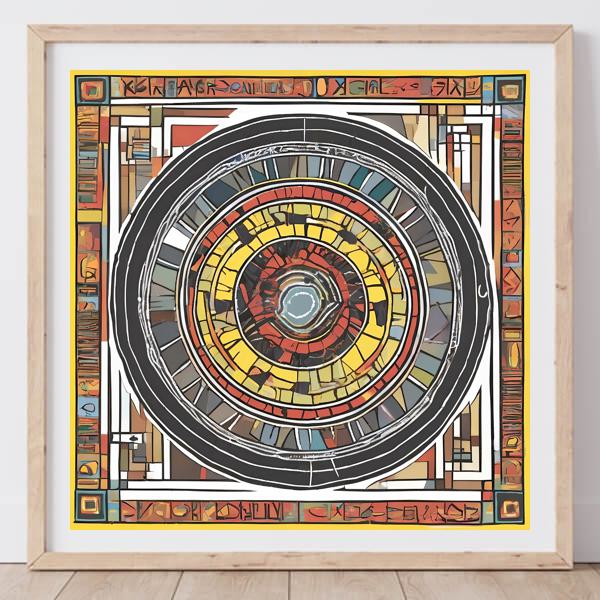 制作者と AI (AI アート作成用のプログラム Stable Diffusion XL 1.0 (1024)) とからなるアートユニット カナブストラクド によるアート画像です.そのプログラムに「Kanabstracd aboriginal Mondrian」ということば (prompt) をあたえて創造させました. 負のプロンプトとして「Mondrian rectangles」を指定しています.
