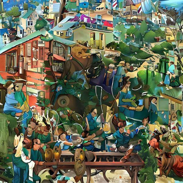 These images are created by our original method, which is different from usual AI art images. AI art images are created by giving English description called prompt. Many AI art images were created by using AI art programs such as Stable Diffusion,DALL・E 2,or Midjourney in 2022. To create expected images by AI art, a detailed description is usually given. However, we usually give only a few words or a coined word to web sites of OpenArt, NightCafe, etc., which use ; That is, the program create images generatively and emergently using the knowledge of the program freely. The contrast of created images are adjusted, but they were not modified.