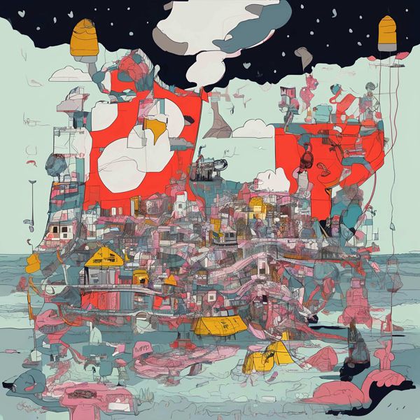 制作者と AI (AI アート作成用のプログラム Stable Diffusion XL 1.0 (1024)) とからなるアートユニット カナブストラクド によるアート画像です.そのプログラムに「Kanabstracd absurdism」ということば (prompt) をあたえて創造させました.