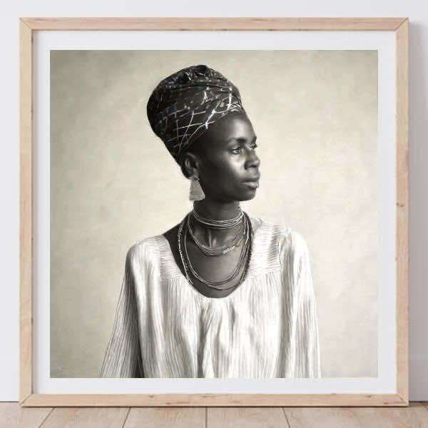 AI アートでは通常 A6 サイズ相当くらい (縦横 500〜1000 ピクセルくらい) の荒い画像しかつくれないので,超解像という技術をつかって原画より解像度を 4〜8 倍に (こまかく) しています. ただし,上の商品画像の解像度は原画と同程度なのでご注意ください.