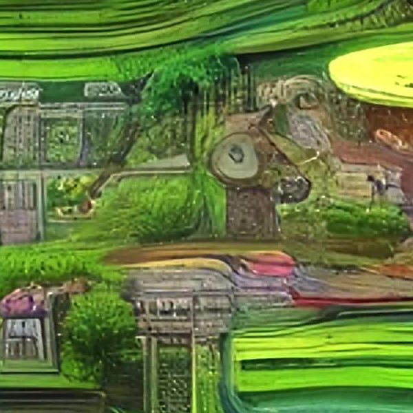 AI Artwork: Kanabstracd “Hundertwasser-esque Absurd Realism without Bows”