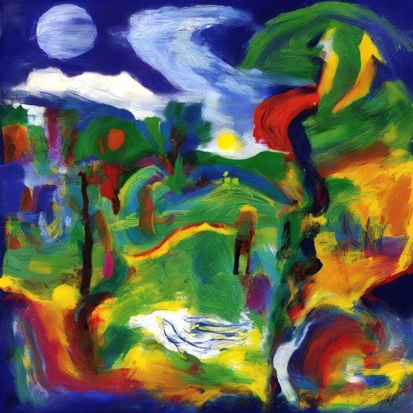 制作者と AI (AI アート作成用のプログラム Stable Diffusion XL 1.0 (1024)) とからなるアートユニット カナブストラクド によるアート画像です.そのプログラムに「Kanabstracd surrealism Gauguin」ということば (prompt) をあたえて創造させました. 負のプロンプトとして「surrealism Gauguin bows」を指定しています.