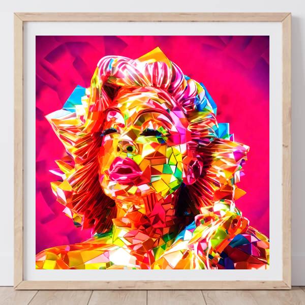 制作者と AI (AI アート作成用のプログラム Stable Diffusion XL 1.0 (1024)) とからなるアートユニット カナブストラクド によるアート画像です.そのプログラムに「Kanabstracd 3D monroe」ということば (prompt) をあたえて創造させました. 負のプロンプトとして「monroe plain_gray」を指定しています.