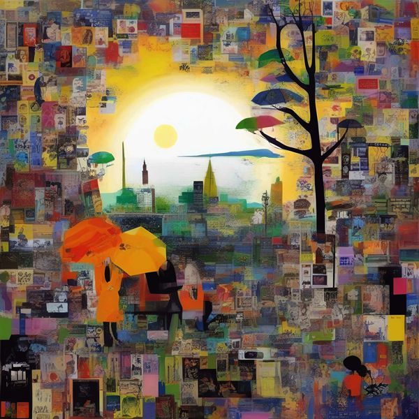 これらの画像は通常の AI アートとはちがう独自の方法を使って作っています. AI アートは AI にプロンプト (または呪文) とよばれる英語の記述をあたえて作画した画像ですが, Stable Diffusion,DALL・E 2,Midjourney などの AI プログラムによって 2022 年に爆発的に普及しました. AI アートで望む画像を作るために通常は比較的細かい指示を与えます. しかしデイシンではおもに 1〜4 語程度の短いことばや造語を Stable Diffusion XL 1.0 (1024) を使用している OpenArt,NightCafe などのウェブサイトで使用して,そのプログラムがもつ知識をいかして自由に (ジェネラティブに,創発的に) 画像をつくらせています. コントラストの調整等はしていますが,描きなおさせたり加筆したりするようなことはしていません.