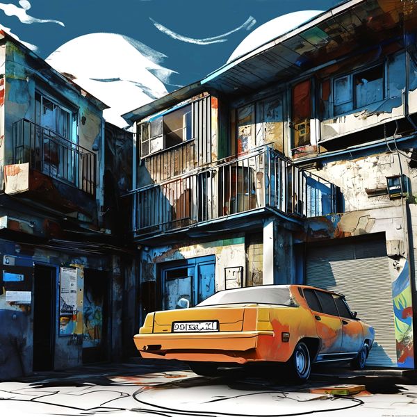 これらの画像は通常の AI アートとはちがう独自の方法を使って作っています. AI アートは AI にプロンプト (または呪文) とよばれる英語の記述をあたえて作画した画像ですが, Stable Diffusion,DALL・E 2,Midjourney などの AI プログラムによって 2022 年に爆発的に普及しました. AI アートで望む画像を作るために通常は比較的細かい指示を与えます. しかしデイシンではおもに 1〜4 語程度の短いことばや造語を Stable Diffusion XL 1.0 (1024) を使用している OpenArt,NightCafe などのウェブサイトで使用して,そのプログラムがもつ知識をいかして自由に (ジェネラティブに,創発的に) 画像をつくらせています. コントラストの調整等はしていますが,描きなおさせたり加筆したりするようなことはしていません.