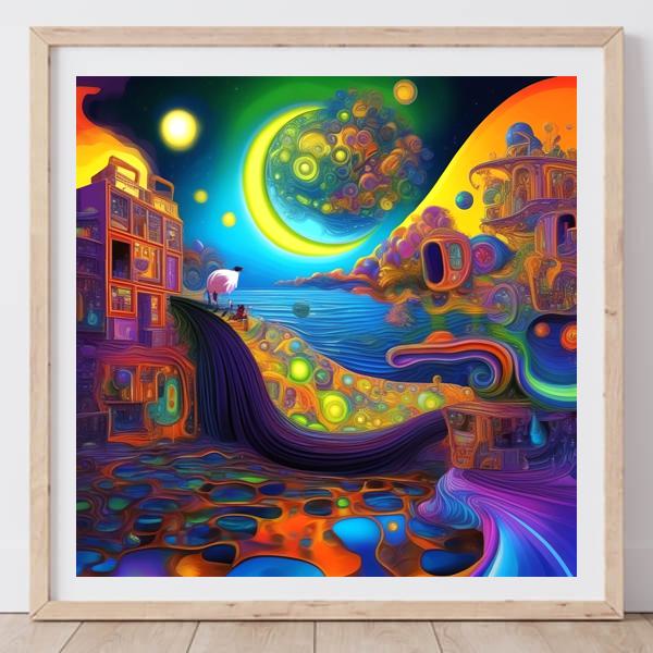 In AI art, the images generated are usually quite rough—about the size of an A6 print (roughly 500–1000 pixels on each side). To make them suitable for presentation, I use a technique called super-resolution, which increases the resolution 4–8 times higher than the original, adding finer detail. However, please note that the resolution of the product image shown above is about the same as the original and has not been upscaled.
