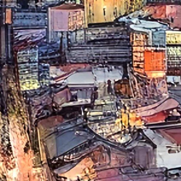 制作者と AI (AI アート作成用のプログラム Stable Diffusion XL 1.0 (1024)) とからなるアートユニット カナブストラクド によるアート画像です.そのプログラムに「Kanabstracd urbann Hiroshige」ということば (prompt) をあたえて創造させました. 負のプロンプトとして「Hiroshige」を指定しています.