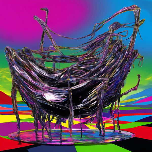 これらの画像は通常の AI アートとはちがう独自の方法を使って作っています. AI アートは AI にプロンプト (または呪文) とよばれる英語の記述をあたえて作画した画像ですが, Stable Diffusion,DALL・E 2,Midjourney などの AI プログラムによって 2022 年に爆発的に普及しました. AI アートで望む画像を作るために通常は比較的細かい指示を与えます. しかしデイシンではおもに 1〜4 語程度の短いことばや造語を Stable Diffusion XL 1.0 (1024) を使用している OpenArt,NightCafe などのウェブサイトで使用して,そのプログラムがもつ知識をいかして自由に (ジェネラティブに,創発的に) 画像をつくらせています. コントラストの調整等はしていますが,描きなおさせたり加筆したりするようなことはしていません.