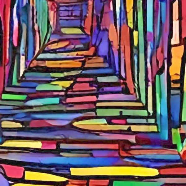 こうやって作られる「意図しない」画像も「AI アート」とは呼ばれるものの,かならずしもアートとはいえないと考えています. しかし,思いもよらない画像や特定の画家風の部分がありながらその作品とはちがうスタイルの画像,模様やステンドグラスに埋め込まれた猫など,様々な興味ぶかい画像がつくれます.