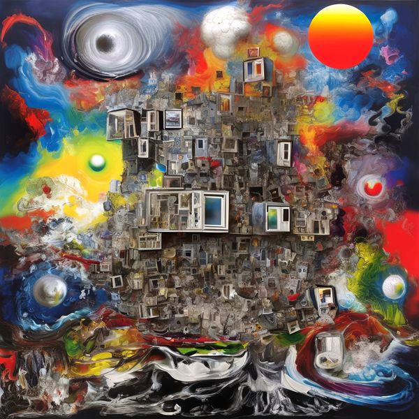 制作者と AI (AI アート作成用のプログラム Stable Diffusion XL 1.0 (1024)) とからなるアートユニット カナブストラクド によるアート画像です.そのプログラムに「Kanabstracd absurdism」ということば (prompt) をあたえて創造させました. 負のプロンプトとして「arrows」を指定しています.
