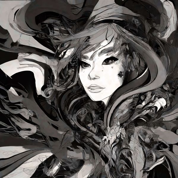これらの画像は通常の AI アートとはちがう独自の方法を使って作っています. AI アートは AI にプロンプト (または呪文) とよばれる英語の記述をあたえて作画した画像ですが, Stable Diffusion,DALL・E 2,Midjourney などの AI プログラムによって 2022 年に爆発的に普及しました. AI アートで望む画像を作るために通常は比較的細かい指示を与えます. しかしデイシンではおもに 1〜4 語程度の短いことばや造語を Stable Diffusion XL 1.0 (1024) を使用している OpenArt,NightCafe などのウェブサイトで使用して,そのプログラムがもつ知識をいかして自由に (ジェネラティブに,創発的に) 画像をつくらせています. コントラストの調整等はしていますが,描きなおさせたり加筆したりするようなことはしていません.
