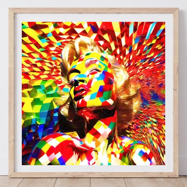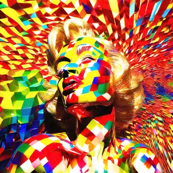 制作者と AI (AI アート作成用のプログラム Stable Diffusion XL 1.0 (1024)) とからなるアートユニット カナブストラクド によるアート画像です.そのプログラムに「Kanabstracd 3D marilyn」ということば (prompt) をあたえて創造させました. 負のプロンプトとして「marilyn plain_gray」を指定しています.