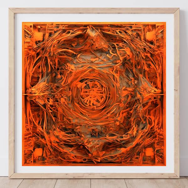 制作者と AI (AI アート作成用のプログラム Stable Diffusion XL 1.0 (1024)) とからなるアートユニット カナブストラクド によるアート画像です.そのプログラムに「Kanabstracd 3D intricate」ということば (prompt) をあたえて創造させました. 負のプロンプトとして「intricate monochrome」を指定しています.