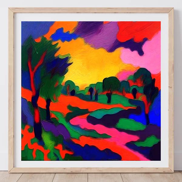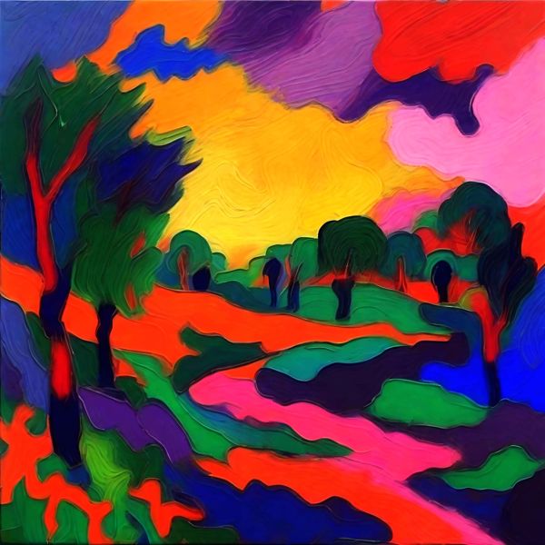 制作者と AI (AI アート作成用のプログラム Stable Diffusion XL 1.0 (1024)) とからなるアートユニット カナブストラクド によるアート画像です.そのプログラムに「Kanabstracd fauvism」ということば (prompt) をあたえて創造させました. 負のプロンプトとして「checker」を指定しています.