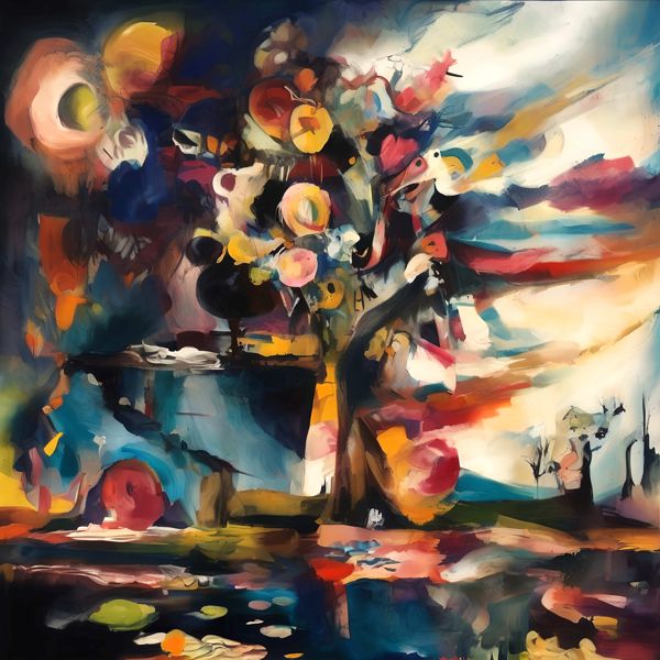 制作者と AI (AI アート作成用のプログラム Stable Diffusion XL 1.0 (1024)) とからなるアートユニット カナブストラクド によるアート画像です.そのプログラムに「Kanabstracd absurd_realism Kandinsky」ということば (prompt) をあたえて創造させました. 負のプロンプトとして「Kandinsky mesh」を指定しています.