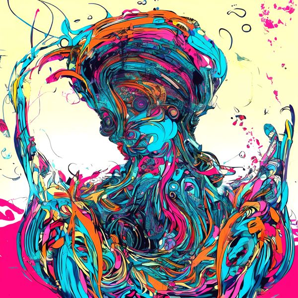 これらの画像は通常の AI アートとはちがう独自の方法を使って作っています. AI アートは AI にプロンプト (または呪文) とよばれる英語の記述をあたえて作画した画像ですが, Stable Diffusion,DALL・E 2,Midjourney などの AI プログラムによって 2022 年に爆発的に普及しました. AI アートで望む画像を作るために通常は比較的細かい指示を与えます. しかしデイシンではおもに 1〜4 語程度の短いことばや造語を Stable Diffusion XL 1.0 (1024) を使用している OpenArt,NightCafe などのウェブサイトで使用して,そのプログラムがもつ知識をいかして自由に (ジェネラティブに,創発的に) 画像をつくらせています. コントラストの調整等はしていますが,描きなおさせたり加筆したりするようなことはしていません.