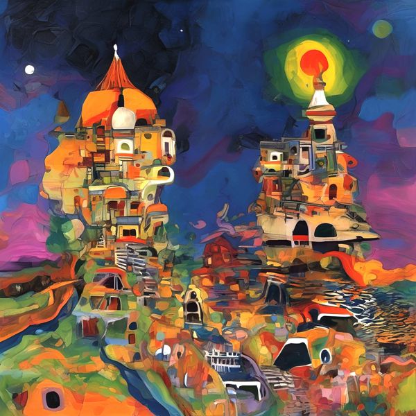 These images are created by our original method, which is different from usual AI art images. AI art images are created by giving English description called prompt. Many AI art images were created by using AI art programs such as Stable Diffusion,DALL・E 2,or Midjourney in 2022. To create expected images by AI art, a detailed description is usually given. However, we usually give only a few words or a coined word to web sites of OpenArt, NightCafe, etc., which use Stable Diffusion XL 1.0 (1024); That is, the program create images generatively and emergently using the knowledge of the program freely. The contrast of created images are adjusted, but they were not modified.