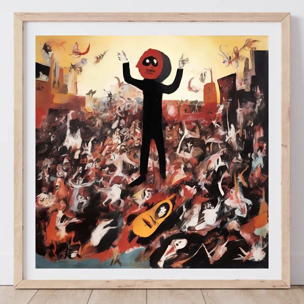 制作者と AI (AI アート作成用のプログラム Stable Diffusion XL 1.0 (1024)) とからなるアートユニット カナブストラクド によるアート画像です.そのプログラムに「Kanabstracd absurdism Miro」ということば (prompt) をあたえて創造させました. 負のプロンプトとして「Miro mesh」を指定しています.
