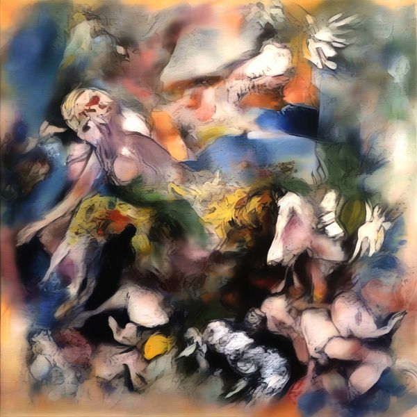 制作者と AI (AI アート作成用のプログラム Stable Diffusion XL 1.0 (1024)) とからなるアートユニット カナブストラクド によるアート画像です.そのプログラムに「Kanabstracd Chagall」ということば (prompt) をあたえて創造させました. 負のプロンプトとして「Chagall complex」を指定しています.