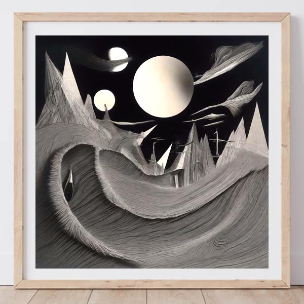 In AI art, the images generated are usually quite rough—about the size of an A6 print (roughly 500–1000 pixels on each side). To make them suitable for presentation, I use a technique called super-resolution, which increases the resolution 4–8 times higher than the original, adding finer detail. However, please note that the resolution of the product image shown above is about the same as the original and has not been upscaled.