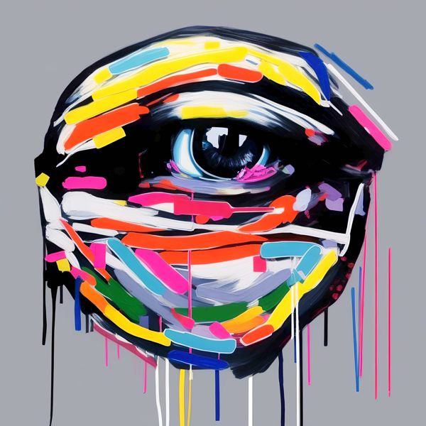 これらの画像は通常の AI アートとはちがう独自の方法を使って作っています. AI アートは AI にプロンプト (または呪文) とよばれる英語の記述をあたえて作画した画像ですが, Stable Diffusion,DALL・E 2,Midjourney などの AI プログラムによって 2022 年に爆発的に普及しました. AI アートで望む画像を作るために通常は比較的細かい指示を与えます. しかしデイシンではおもに 1〜4 語程度の短いことばや造語を Stable Diffusion XL 1.0 (1024) を使用している OpenArt,NightCafe などのウェブサイトで使用して,そのプログラムがもつ知識をいかして自由に (ジェネラティブに,創発的に) 画像をつくらせています. コントラストの調整等はしていますが,描きなおさせたり加筆したりするようなことはしていません.