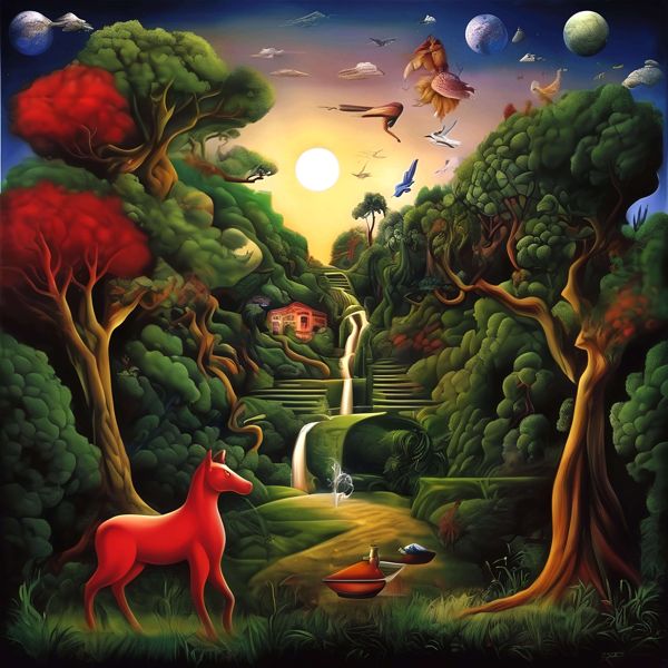 These images are created by our original method, which is different from usual AI art images. AI art images are created by giving English description called prompt. Many AI art images were created by using AI art programs such as Stable Diffusion,DALL・E 2,or Midjourney in 2022. To create expected images by AI art, a detailed description is usually given. However, we usually give only a few words or a coined word to web sites of OpenArt, NightCafe, etc., which use Stable Diffusion XL 1.0 (1024); That is, the program create images generatively and emergently using the knowledge of the program freely. The contrast of created images are adjusted, but they were not modified.