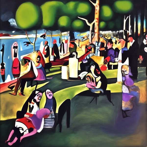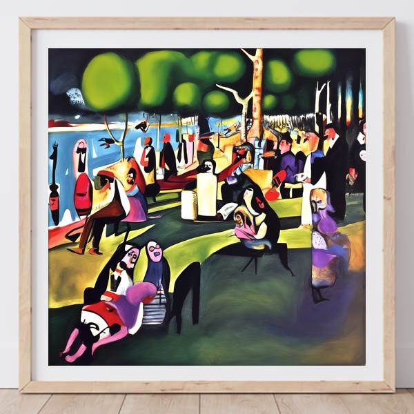 This image was created by ‘Kanabstracd,’ an art unit formed by the creator and the AI (Stable Diffusion XL 1.0 (1024), a program for creating AI artworks). I gave the program the word ‘Kanabstracd absurdism Seurat’ as a prompt and let it create. Also “mesh ” was used as the negative prompt.