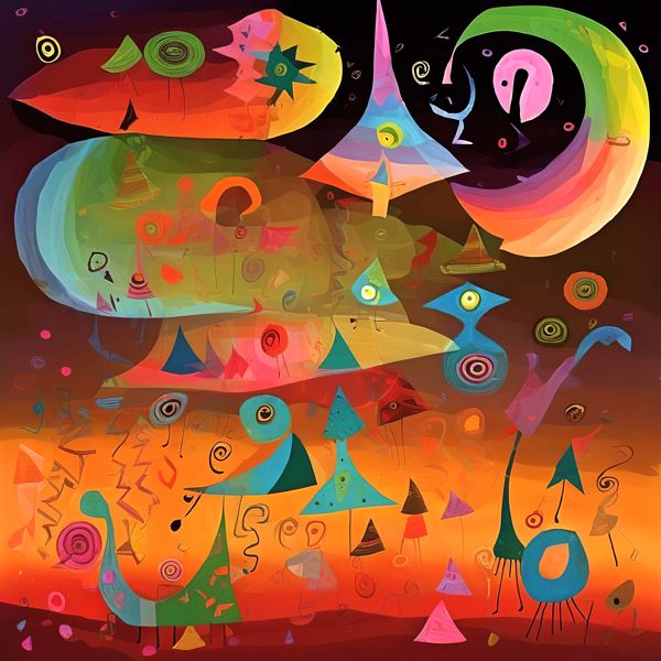 制作者と AI (AI アート作成用のプログラム Stable Diffusion XL 1.0 (1024)) とからなるアートユニット カナブストラクド によるアート画像です.そのプログラムに「Kanabstracd surrealism Klee」ということば (prompt) をあたえて創造させました. 負のプロンプトとして「Mondrian」を指定しています.