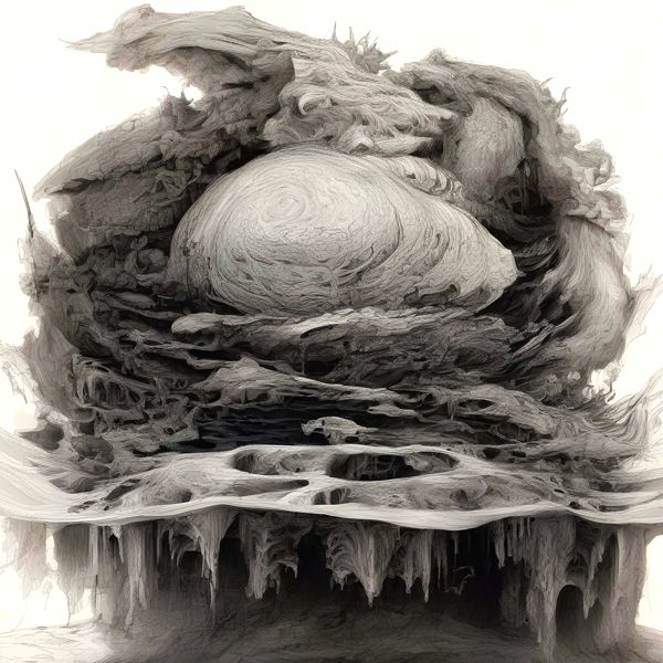 これらの画像は通常の AI アートとはちがう独自の方法を使って作っています. AI アートは AI にプロンプト (または呪文) とよばれる英語の記述をあたえて作画した画像ですが, Stable Diffusion,DALL・E 2,Midjourney などの AI プログラムによって 2022 年に爆発的に普及しました. AI アートで望む画像を作るために通常は比較的細かい指示を与えます. しかしデイシンではおもに 1〜4 語程度の短いことばや造語を Stable Diffusion XL 1.0 (1024) を使用している OpenArt,NightCafe などのウェブサイトで使用して,そのプログラムがもつ知識をいかして自由に (ジェネラティブに,創発的に) 画像をつくらせています. コントラストの調整等はしていますが,描きなおさせたり加筆したりするようなことはしていません.
