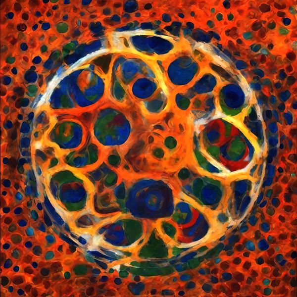 これらの画像は通常の AI アートとはちがう独自の方法を使って作っています. AI アートは AI にプロンプト (または呪文) とよばれる英語の記述をあたえて作画した画像ですが, Stable Diffusion,DALL・E 2,Midjourney などの AI プログラムによって 2022 年に爆発的に普及しました. AI アートで望む画像を作るために通常は比較的細かい指示を与えます. しかしデイシンではおもに 1〜4 語程度の短いことばや造語を Stable Diffusion XL 1.0 (1024) を使用している OpenArt,NightCafe などのウェブサイトで使用して,そのプログラムがもつ知識をいかして自由に (ジェネラティブに,創発的に) 画像をつくらせています. コントラストの調整等はしていますが,描きなおさせたり加筆したりするようなことはしていません.