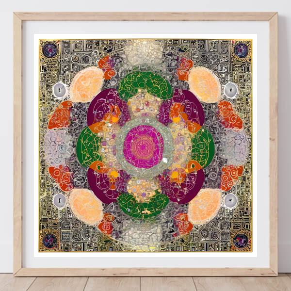 In AI art, the images generated are usually quite rough—about the size of an A6 print (roughly 500–1000 pixels on each side). To make them suitable for presentation, I use a technique called super-resolution, which increases the resolution 4–8 times higher than the original, adding finer detail. However, please note that the resolution of the product image shown above is about the same as the original and has not been upscaled.