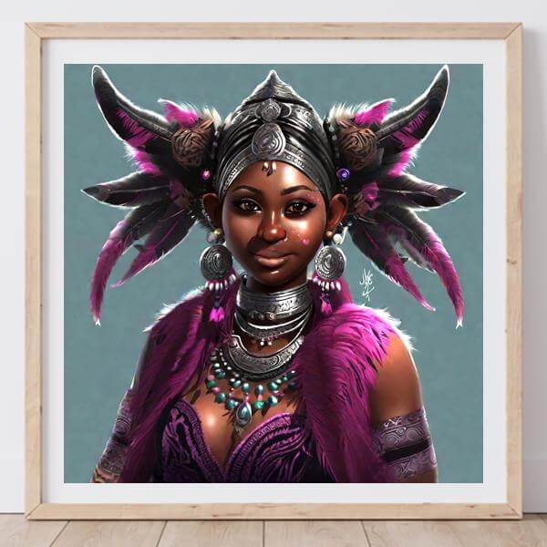 AI アートでは通常 A6 サイズ相当くらい (縦横 500〜1000 ピクセルくらい) の荒い画像しかつくれないので,超解像という技術をつかって原画より解像度を 4〜8 倍に (こまかく) しています. ただし,上の商品画像の解像度は原画と同程度なのでご注意ください.