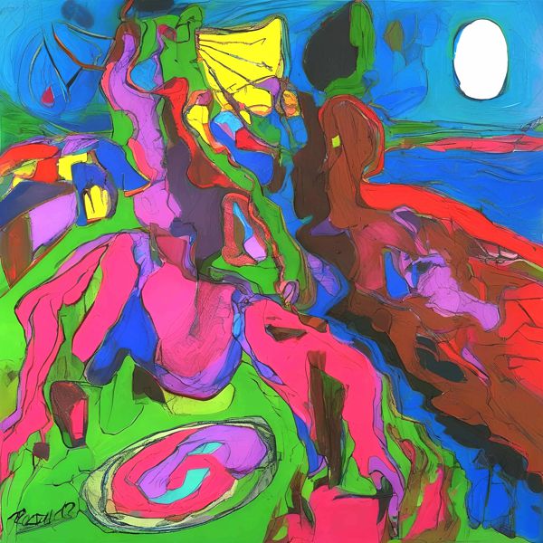 制作者と AI (AI アート作成用のプログラム Stable Diffusion XL 1.0 (1024)) とからなるアートユニット カナブストラクド によるアート画像です.そのプログラムに「Kanabstracd surrealism Matisse」ということば (prompt) をあたえて創造させました. 負のプロンプトとして「surrealism Matisse checker」を指定しています.