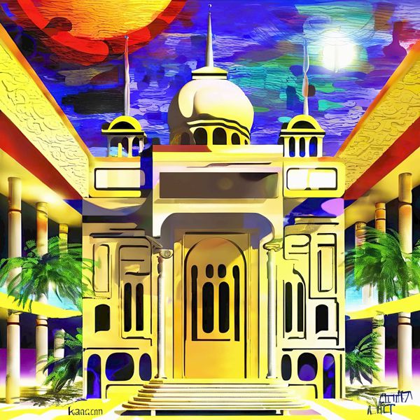 制作者と AI (AI アート作成用のプログラム Stable Diffusion XL 1.0 (1024)) とからなるアートユニット カナブストラクド によるアート画像です.そのプログラムに「Kanabstracd surrealism mosque」ということば (prompt) をあたえて創造させました. 負のプロンプトとして「surrealism mosque bows」を指定しています.