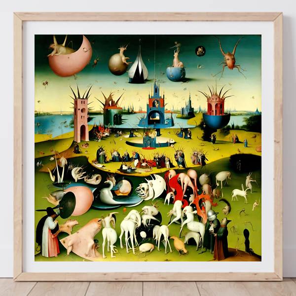 This image was created by ‘Kanabstracd,’ an art unit formed by the creator and the AI (Stable Diffusion XL 1.0 (1024), a program for creating AI artworks). I gave the program the word ‘Kanabstracd Hieronymus_Bosch’ as a prompt and let it create. Also “Argyle ” was used as the negative prompt.
