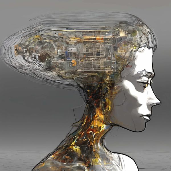 これらの画像は通常の AI アートとはちがう独自の方法を使って作っています. AI アートは AI にプロンプト (または呪文) とよばれる英語の記述をあたえて作画した画像ですが, Stable Diffusion,DALL・E 2,Midjourney などの AI プログラムによって 2022 年に爆発的に普及しました. AI アートで望む画像を作るために通常は比較的細かい指示を与えます. しかしデイシンではおもに 1〜4 語程度の短いことばや造語を Stable Diffusion XL 1.0 (1024) を使用している OpenArt,NightCafe などのウェブサイトで使用して,そのプログラムがもつ知識をいかして自由に (ジェネラティブに,創発的に) 画像をつくらせています. コントラストの調整等はしていますが,描きなおさせたり加筆したりするようなことはしていません.
