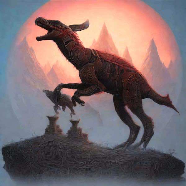 これらの画像は通常の AI アートとはちがう独自の方法を使って作っています. AI アートは AI にプロンプト (または呪文) とよばれる英語の記述をあたえて作画した画像ですが, Stable Diffusion,DALL・E 2,Midjourney などの AI プログラムによって 2022 年に爆発的に普及しました. AI アートで望む画像を作るために通常は比較的細かい指示を与えます. しかしデイシンではおもに 1〜4 語程度の短いことばや造語を Stable Diffusion XL 1.0 (1024) を使用している OpenArt,NightCafe などのウェブサイトで使用して,そのプログラムがもつ知識をいかして自由に (ジェネラティブに,創発的に) 画像をつくらせています. コントラストの調整等はしていますが,描きなおさせたり加筆したりするようなことはしていません.