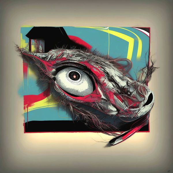 これらの画像は通常の AI アートとはちがう独自の方法を使って作っています. AI アートは AI にプロンプト (または呪文) とよばれる英語の記述をあたえて作画した画像ですが, Stable Diffusion,DALL・E 2,Midjourney などの AI プログラムによって 2022 年に爆発的に普及しました. AI アートで望む画像を作るために通常は比較的細かい指示を与えます. しかしデイシンではおもに 1〜4 語程度の短いことばや造語を Stable Diffusion XL 1.0 (1024) を使用している OpenArt,NightCafe などのウェブサイトで使用して,そのプログラムがもつ知識をいかして自由に (ジェネラティブに,創発的に) 画像をつくらせています. コントラストの調整等はしていますが,描きなおさせたり加筆したりするようなことはしていません.