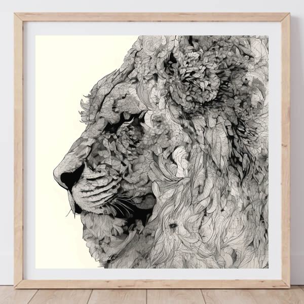 AI アートでは通常 A6 サイズ相当くらい (縦横 500〜1000 ピクセルくらい) の荒い画像しかつくれないので,超解像という技術をつかって原画より解像度を 4〜8 倍に (こまかく) しています. ただし,上の商品画像の解像度は原画と同程度なのでご注意ください.