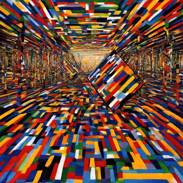 制作者と AI (AI アート作成用のプログラム Stable Diffusion XL 1.0 (1024)) とからなるアートユニット カナブストラクド によるアート画像です.そのプログラムに「Kanabstracd indoor」ということば (prompt) をあたえて創造させました.