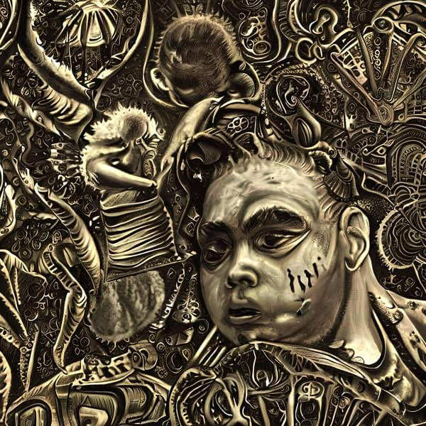 これらの画像は通常の AI アートとはちがう独自の方法を使って作っています. AI アートは AI にプロンプト (または呪文) とよばれる英語の記述をあたえて作画した画像ですが, Stable Diffusion,DALL・E 2,Midjourney などの AI プログラムによって 2022 年に爆発的に普及しました. AI アートで望む画像を作るために通常は比較的細かい指示を与えます. しかしデイシンではおもに 1〜4 語程度の短いことばや造語を Stable Diffusion 2.1 (768) を使用している OpenArt,NightCafe などのウェブサイトで使用して,そのプログラムがもつ知識をいかして自由に (ジェネラティブに,創発的に) 画像をつくらせています. コントラストの調整等はしていますが,描きなおさせたり加筆したりするようなことはしていません.