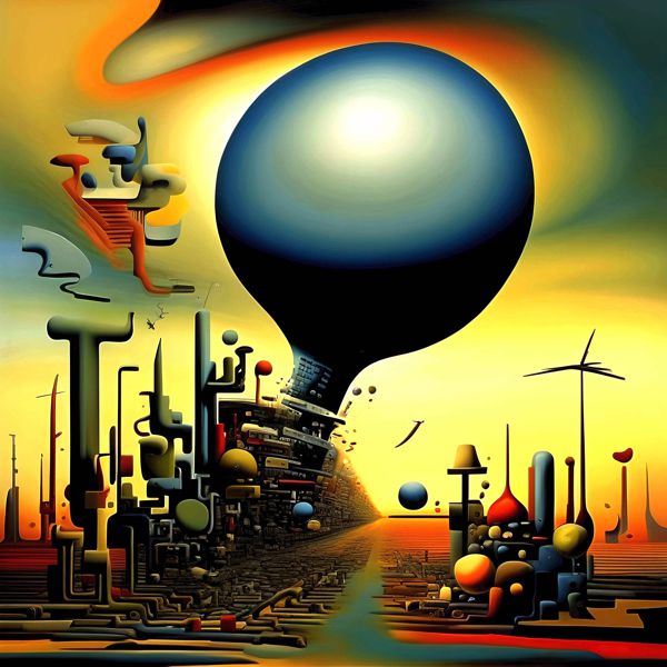 制作者と AI (AI アート作成用のプログラム Stable Diffusion XL 1.0 (1024)) とからなるアートユニット カナブストラクド によるアート画像です.そのプログラムに「Kanabstracd modern surrealism」ということば (prompt) をあたえて創造させました. 負のプロンプトとして「surrealis bows」を指定しています.