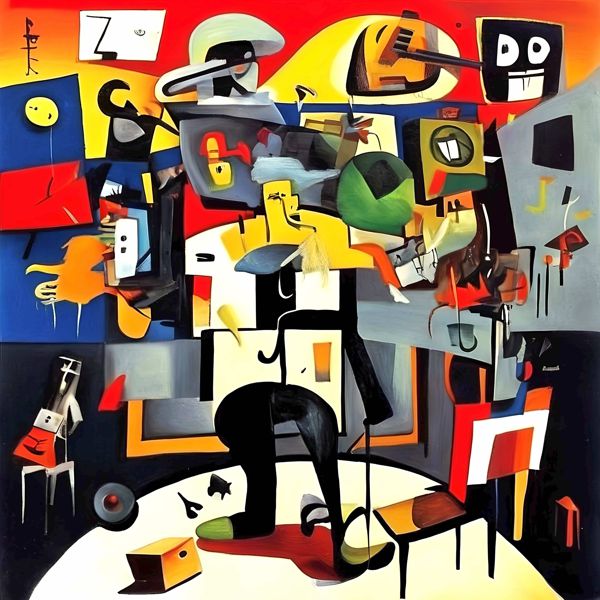 制作者と AI (AI アート作成用のプログラム Stable Diffusion XL 1.0 (1024)) とからなるアートユニット カナブストラクド によるアート画像です.そのプログラムに「Kanabstracd modern surrealism」ということば (prompt) をあたえて創造させました. 負のプロンプトとして「surrealis mesh」を指定しています.
