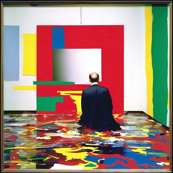 制作者と AI (AI アート作成用のプログラム Stable Diffusion XL 1.0 (1024)) とからなるアートユニット カナブストラクド によるアート画像です.そのプログラムに「Kanabstracd absurdism Gerhard_Richter」ということば (prompt) をあたえて創造させました. 負のプロンプトとして「Gerhard_Richter cedargrain」を指定しています.